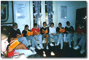 La sesión comienza con la lectura del texto a trabajar. Este momento de compartir el texto que será el punto de partida común a todos, es muy importante (1). Aquello que se comprenda de esa lectura, o les llame la atención será la materia de la cual partirán para la formulación de preguntas.